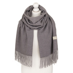 Dwustronny szal damski z poliestru w dominującym czarnym kolorze, ozdobiony frędzlami - Rovicky
