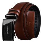 Elegancki pasek męski ze skóry naturalnej w brązowym kolorze z automatyczną, srebrną klamrą - Peterson