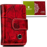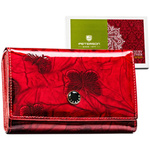 Mały portfel damski ze skóry naturalnej w czerwonym kolorze zamykany na bigiel i zatrzask - Peterson
