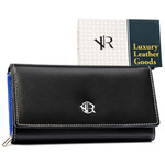 Klasyczny portfel damski ze skóry naturalnej w czarno-złotym kolorze zapakowany w markowe pudełko - Peterson