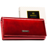 Duży, poziomy, czerwony portfel damski ze skóry naturalnej i ekologicznej zamykany zatrzaskiem - Rovicky