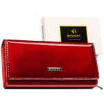 Duży, lakierowany portfel damski ze skóry naturalnej i ekologicznej w czerwonym kolorze, zamykany na zatrzask - Rovicky