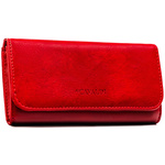 Czerwony portfel damski wykonany ze skóry naturalnej i ekologicznej zamykany na magnes i suwak - Peterson