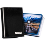 Czarny, pionowy portfel męski ze skóry naturalnej - Peterson
