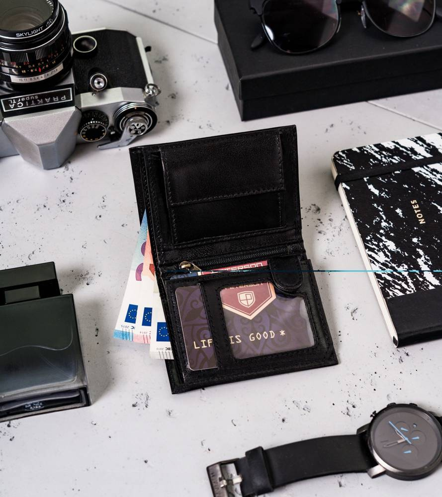 Leather wallet RFID PETERSON PTN 363 2-1-1 BLACK