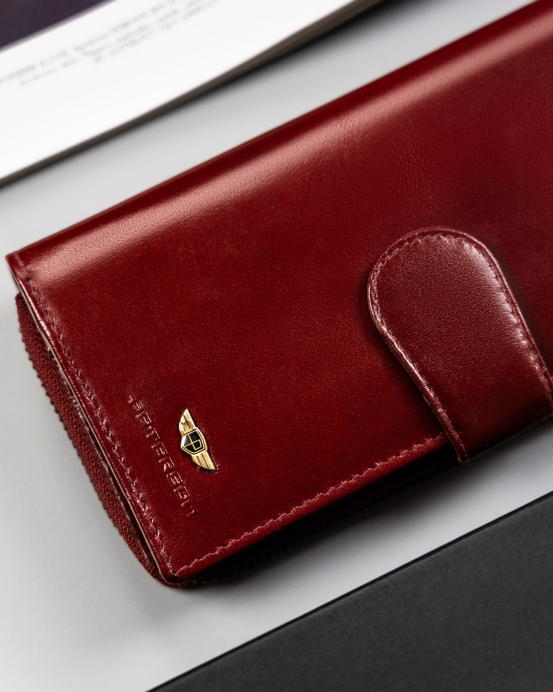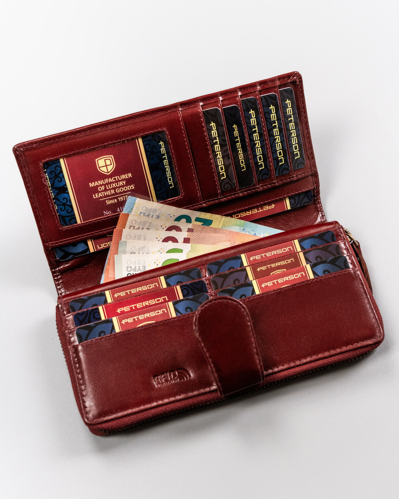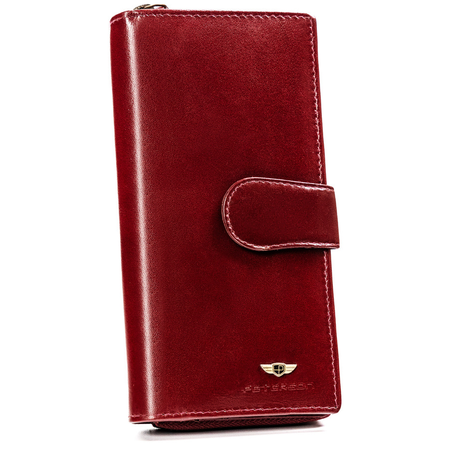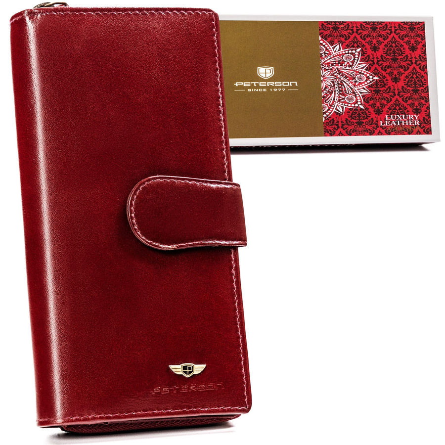 Duży, skórzany portfel damski na zamek i zatrzask - Peterson