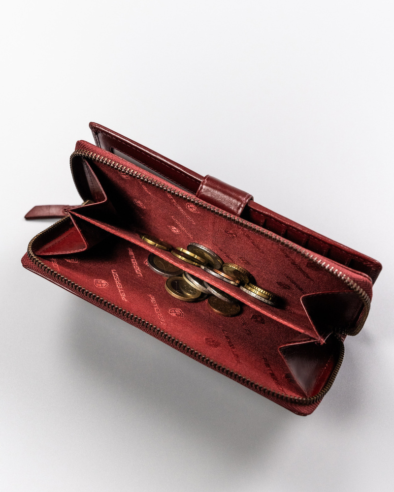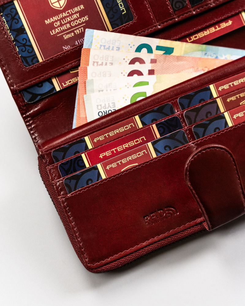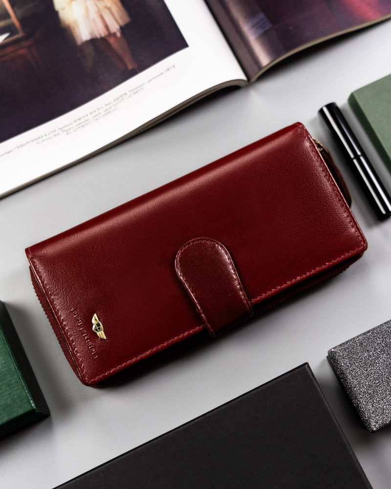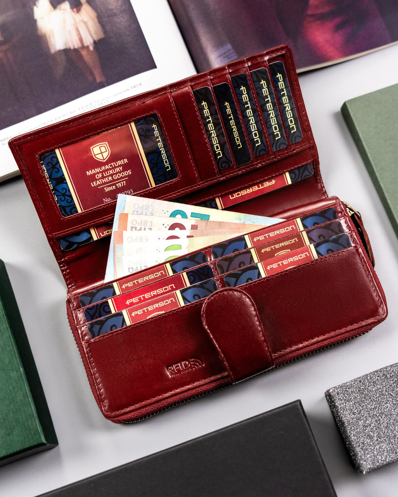 Duży, skórzany portfel damski na zamek i zatrzask - Peterson