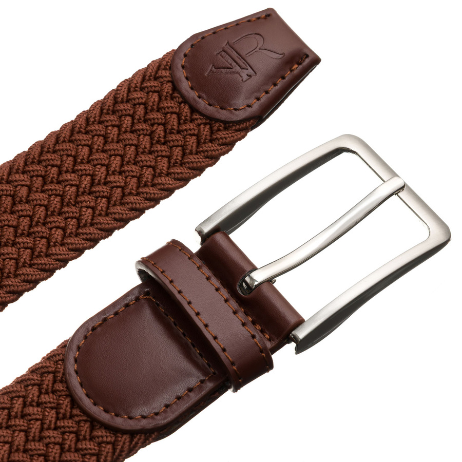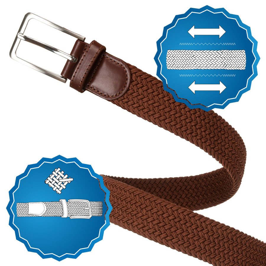 Brązowy pasek parciany z materiału syntetycznego i skóry ekologicznej - Rovicky