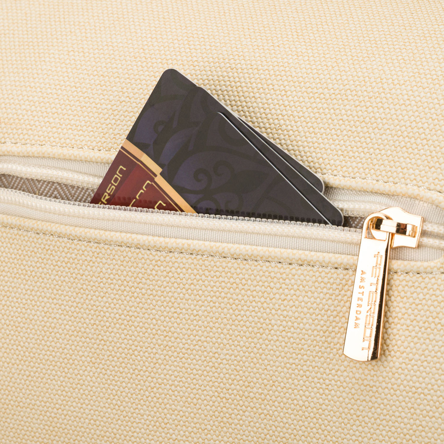 - Z tyłu znajduje się zasuwana kieszeń, idealna na dokumenty, klucze lub drobne akcesoria, które chcesz mieć zawsze pod ręką.
