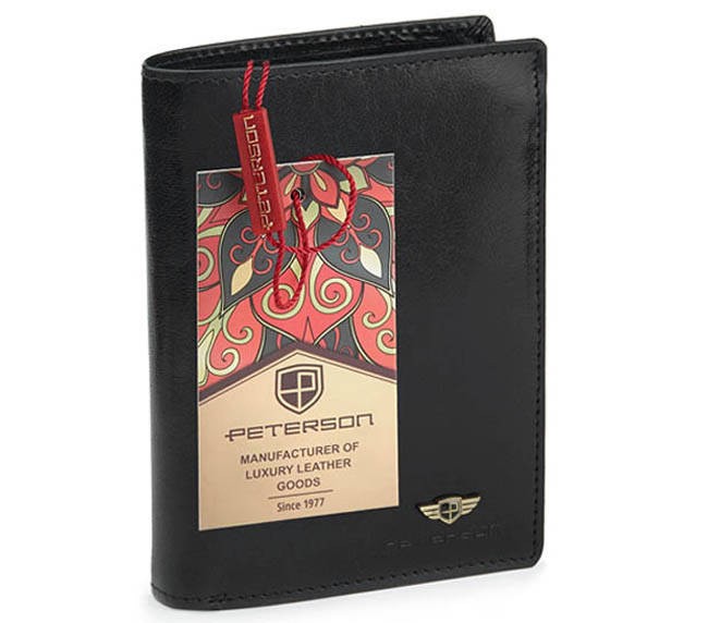 Skórzany portfel męski z kieszenią na dowód rejestracyjny - Peterson