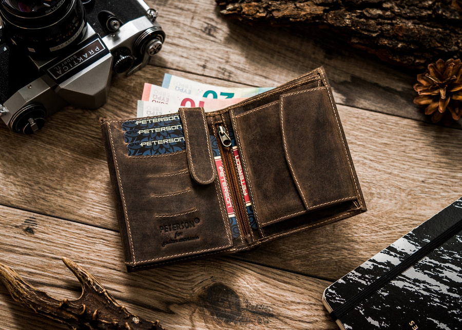 Portfel męski z retro skóry nubukowej - Peterson