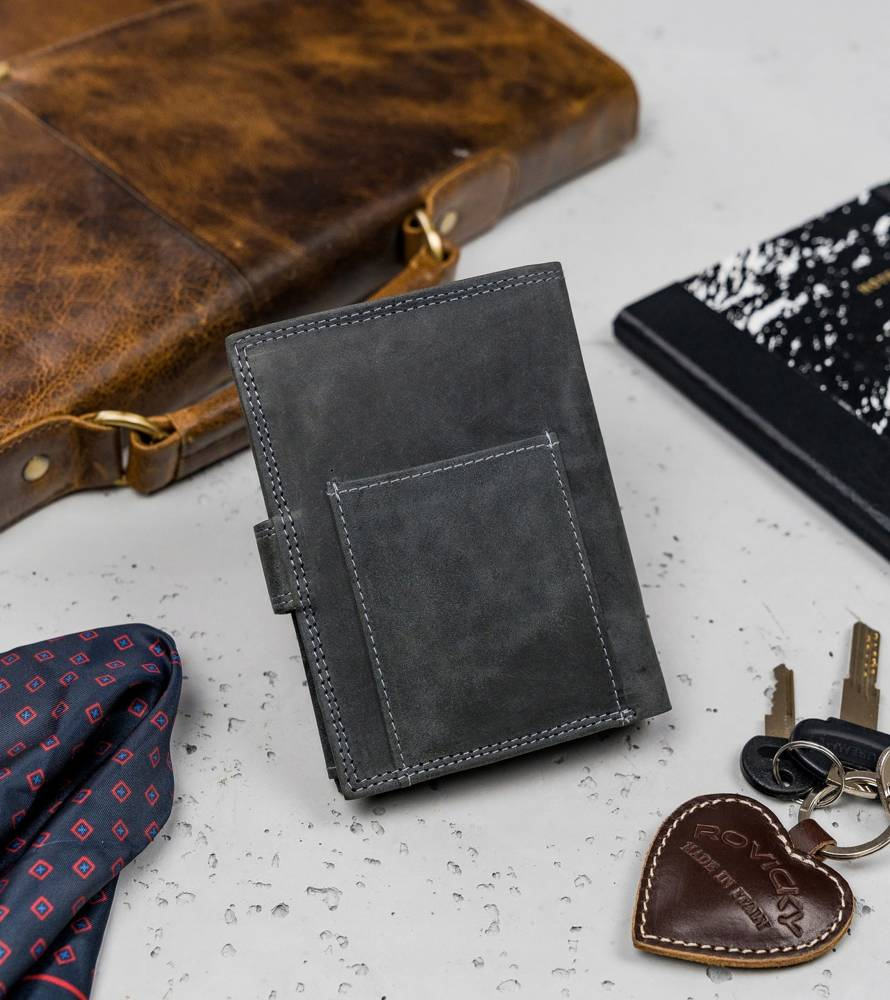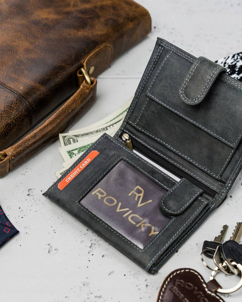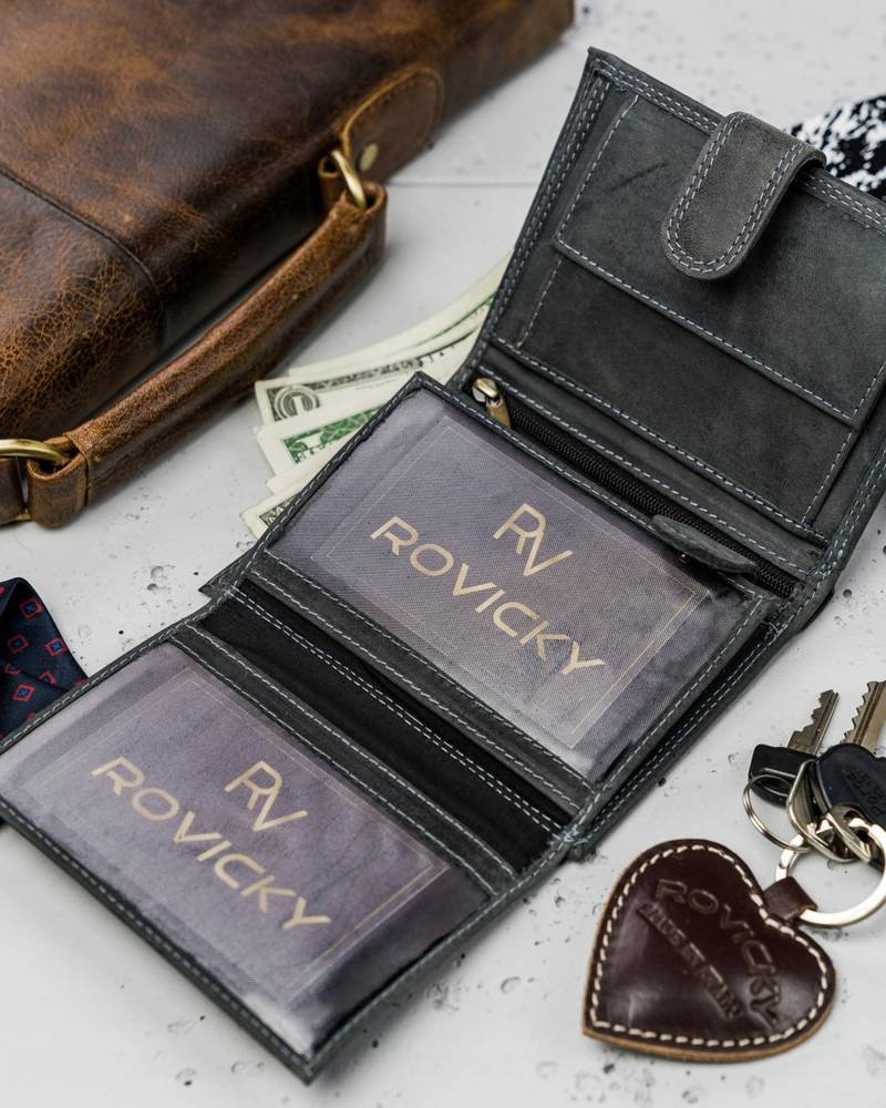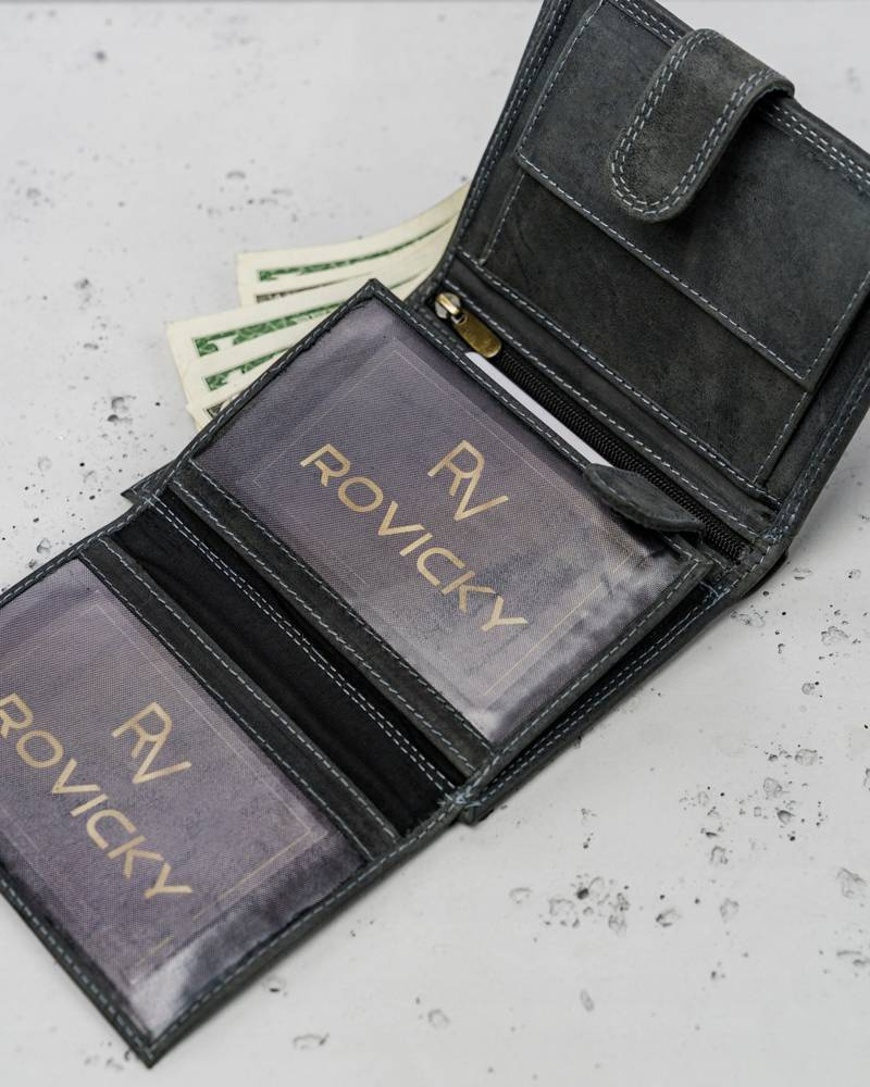 • Odszyty trwale z dbałością o detale. Do produkcji użyto wysokogatunkowej skóry naturalnej nubukowej. Portfel bez problemu mieści karty i dokumenty, które wszyscy posiadamy. Technologia RFID chroni portfel przed złodziejami używającymi czytniku do kart.