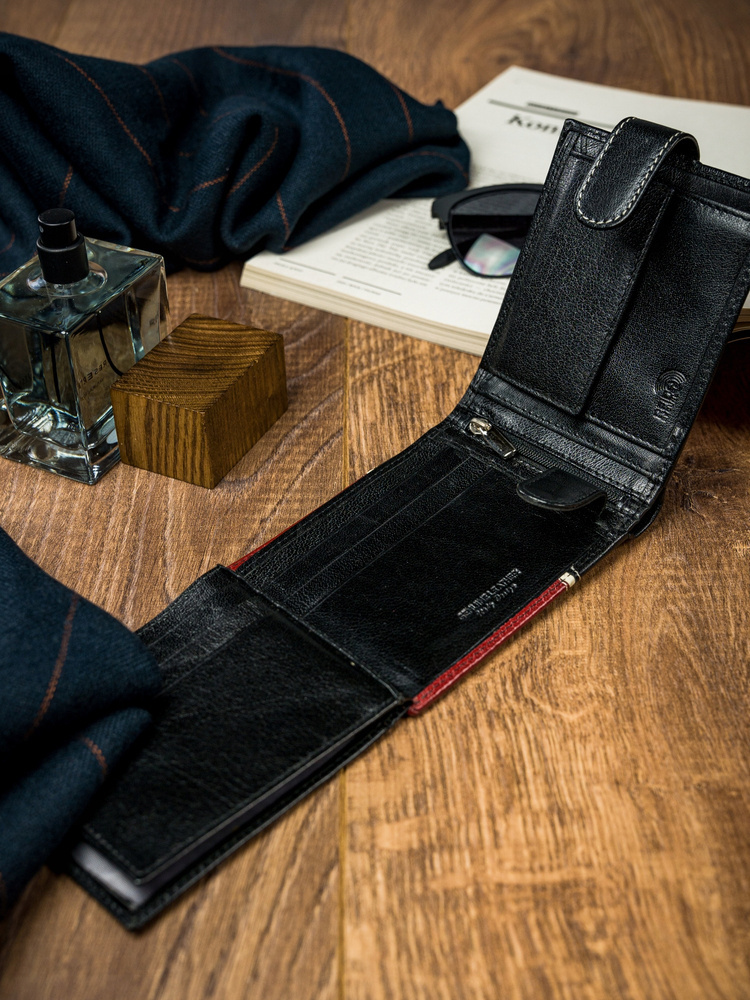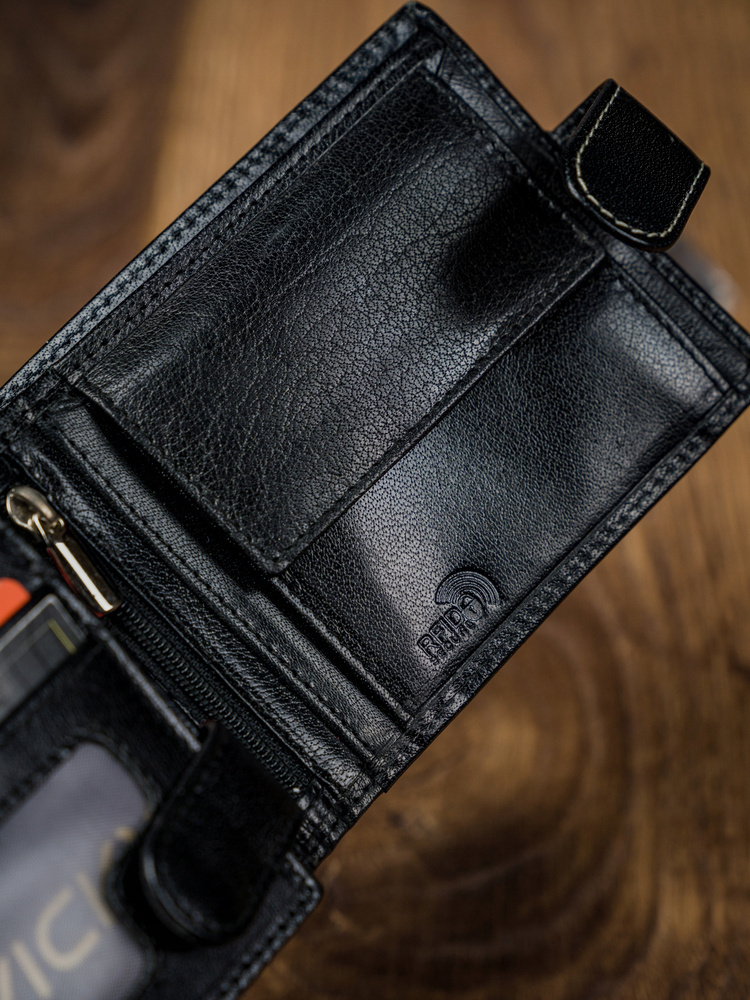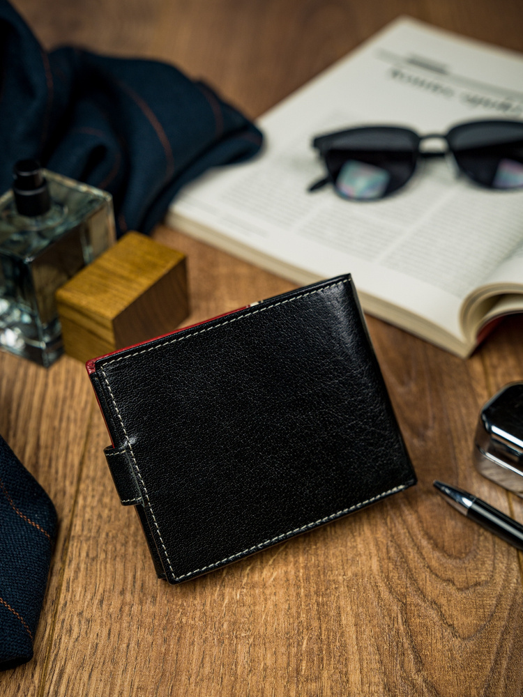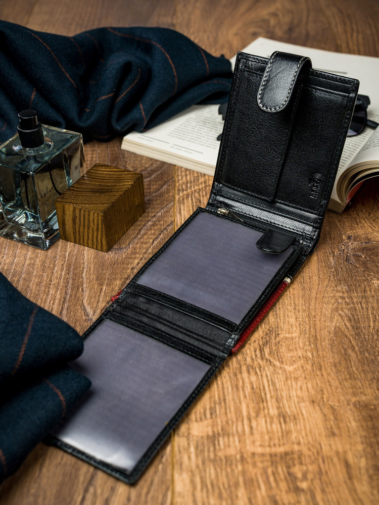 - Ekskluzywny design | Portfel w orientacji poziomej z zapięciem zewnętrznym;
