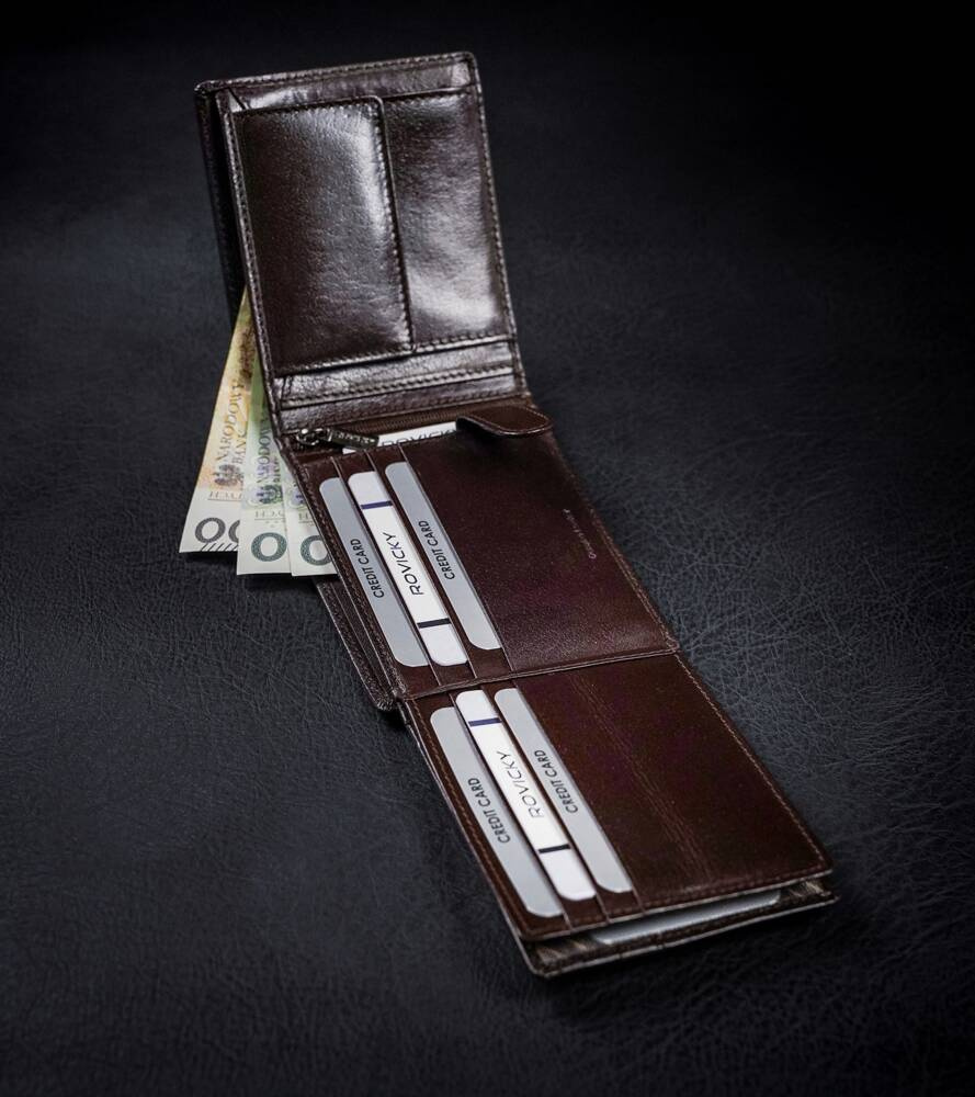 - Bezpieczny - wyposażony w technologię RFID, która chroni portfel przed złodziejami używającymi czytniku do kart;