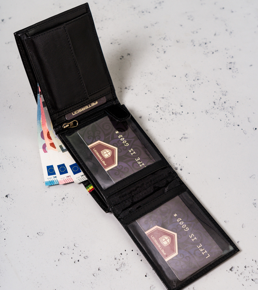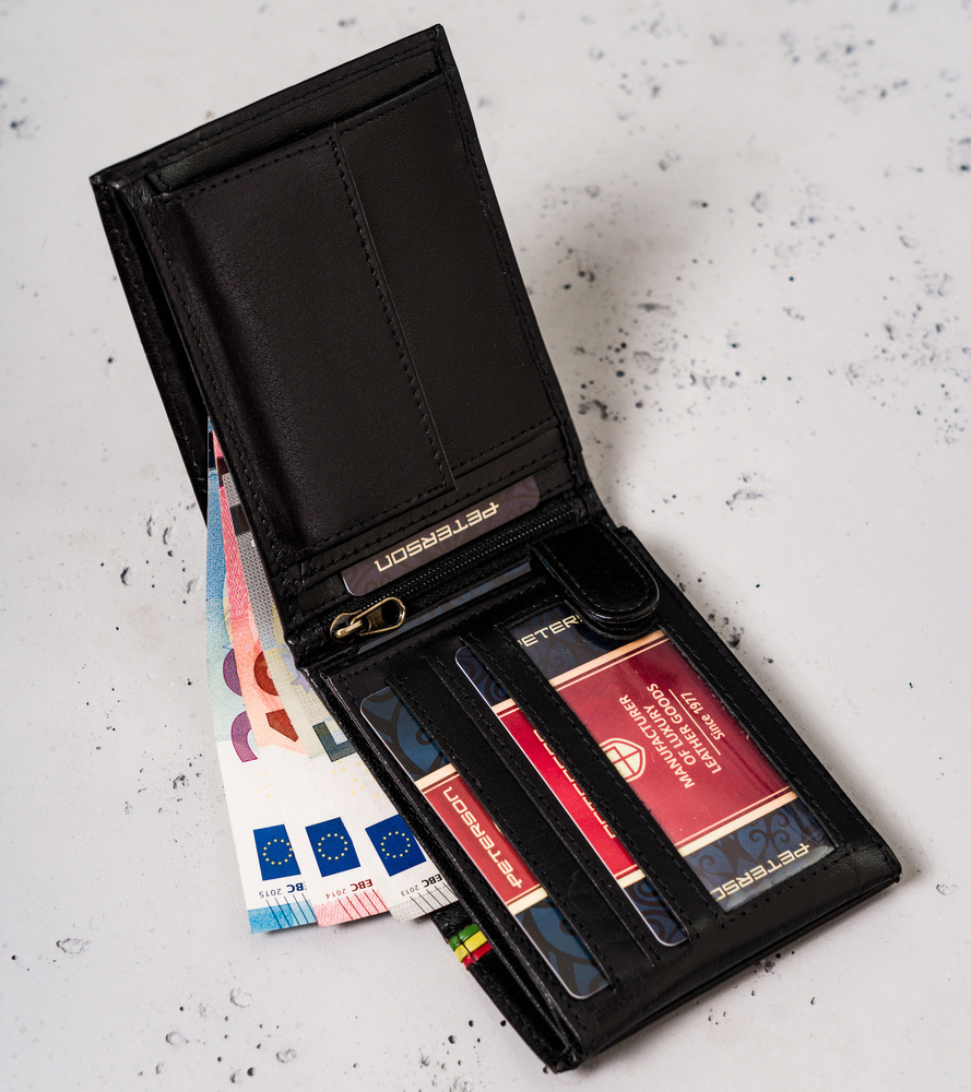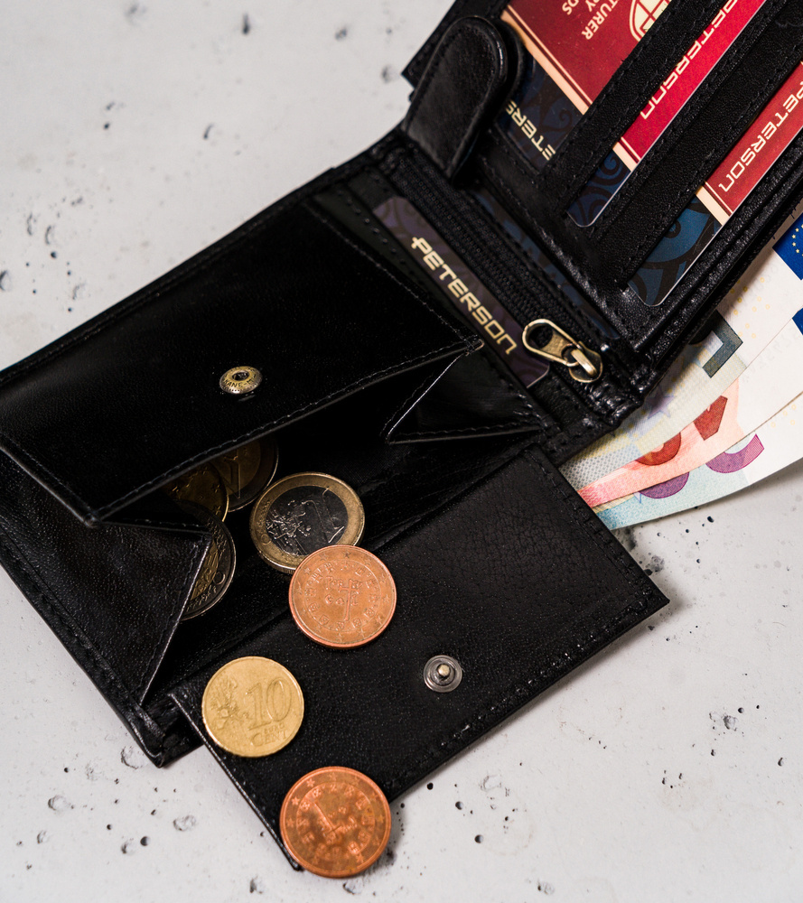 - banknoty schowasz do 2 otwartych, szerokich przegródek, wykończonych materiałową podszewką.