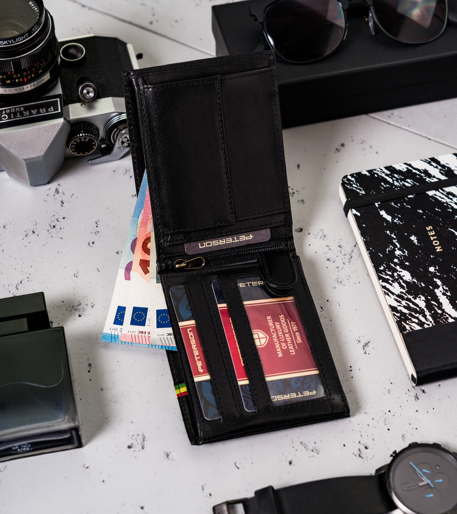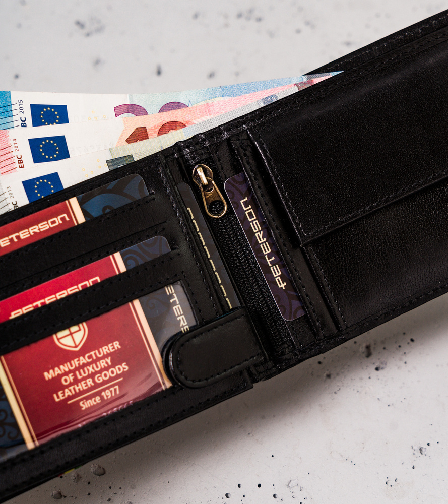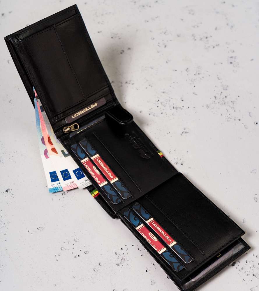 Poziomy portfel męski z kolorową lamówką — Peterson
