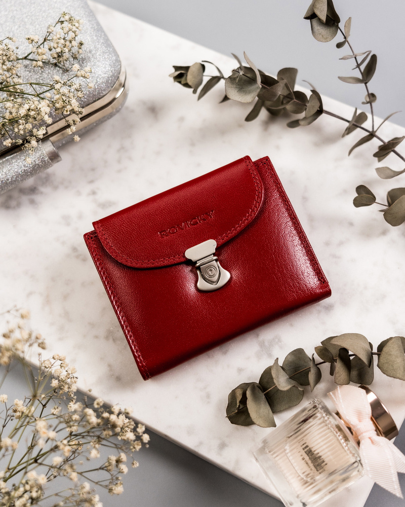 Skórzany portfel damski z ozdobnym zapięciem — Rovicky