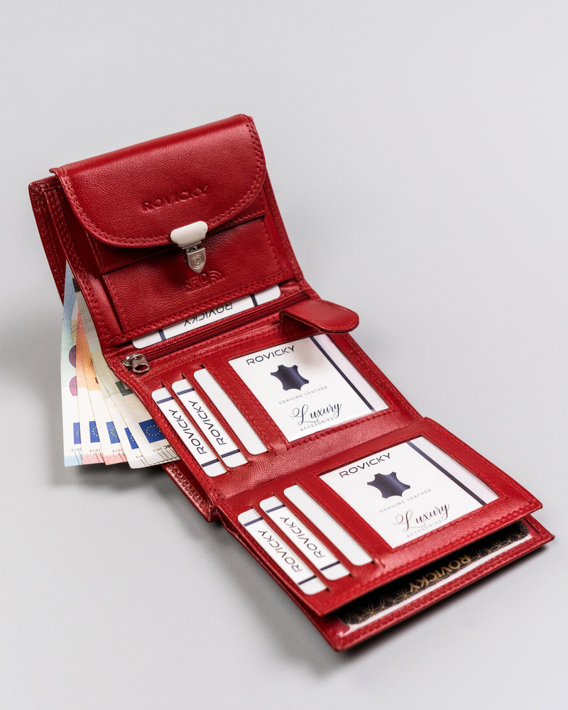 Skórzany portfel damski z ozdobnym zapięciem - Rovicky
