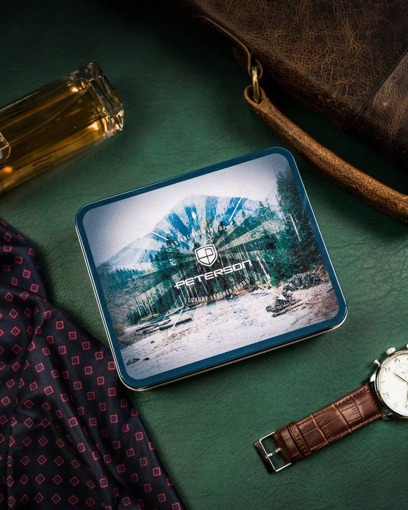 Każdy portfel zapakowany jest w elegancką firmową puszkę.