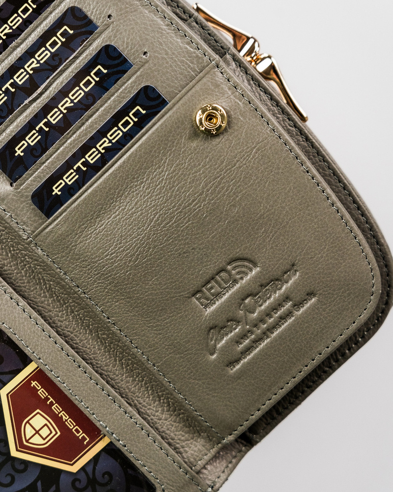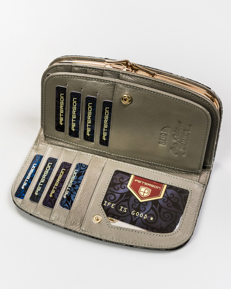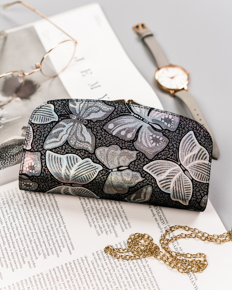 Skórzany portfel damski zdobiony holograficznymi motylami - Peterson
