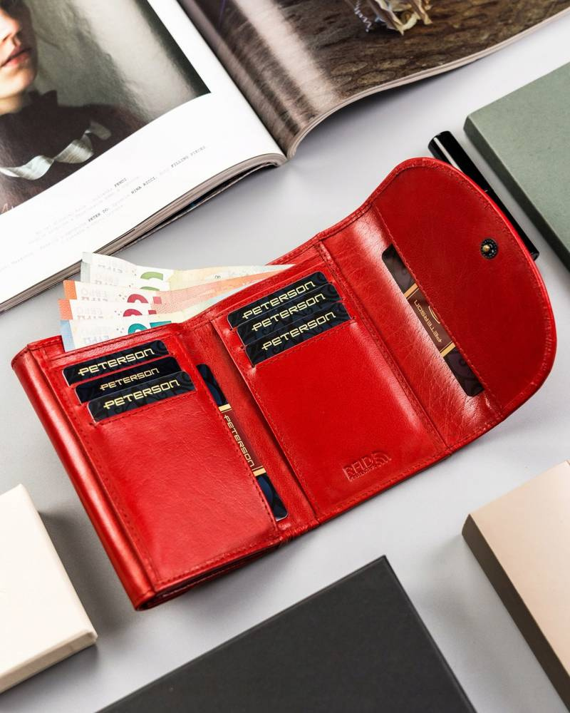 Klasyczny, skórzany portfel damski na zatrzask — Peterson