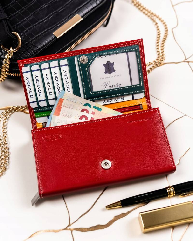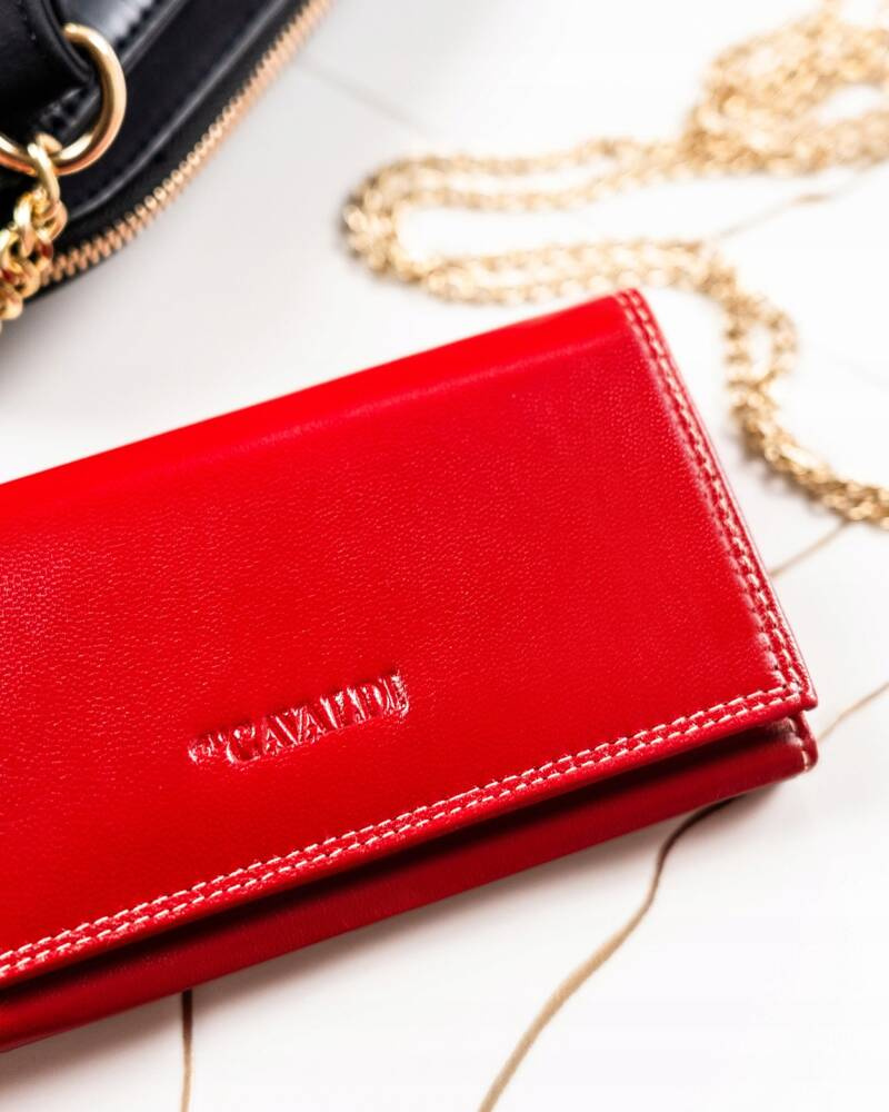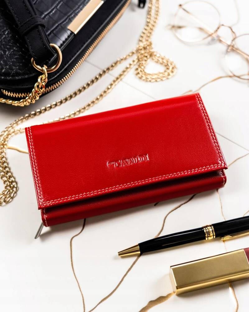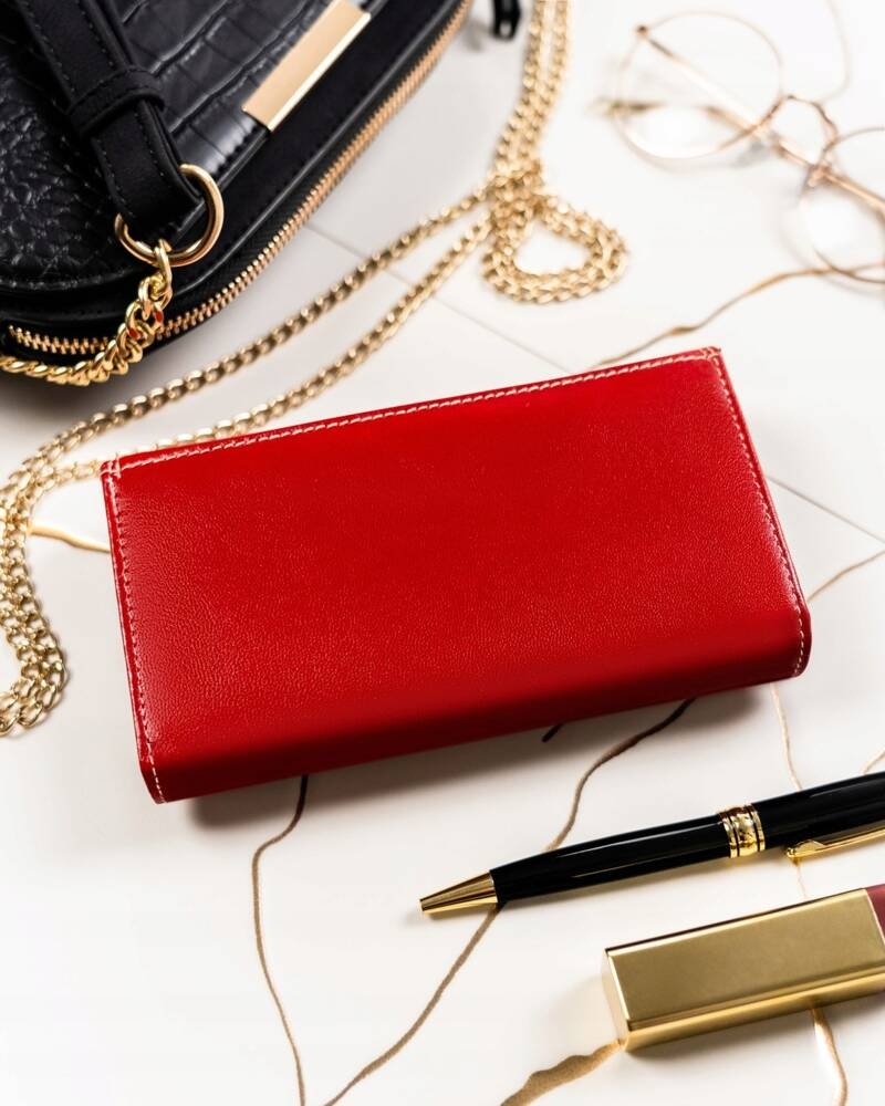 Pojemny czerwony portfel damski ze skóry naturalnej®