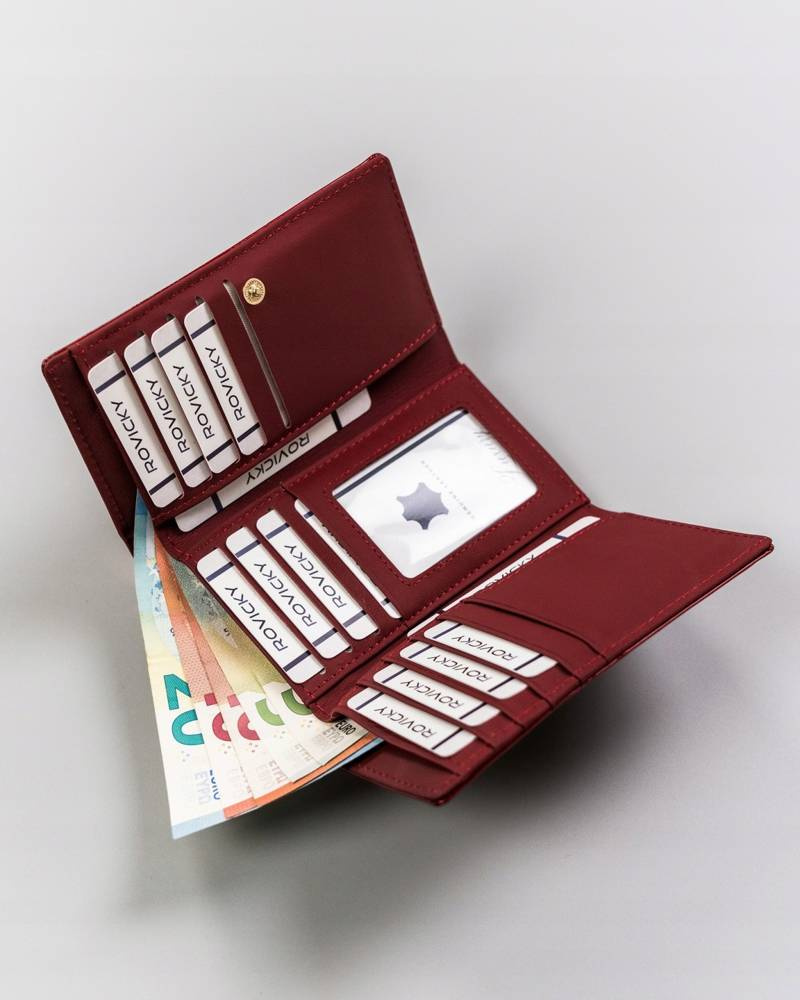 Skórzany portfel damski na bigiel i zatrzask - Rovicky