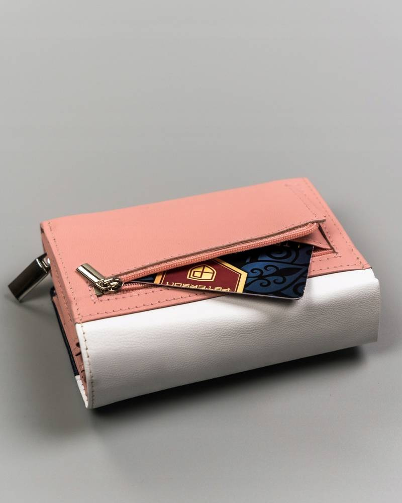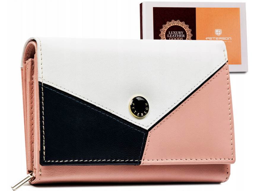 - 1 schowek na suwak wyszyty w środkowej części portfela.