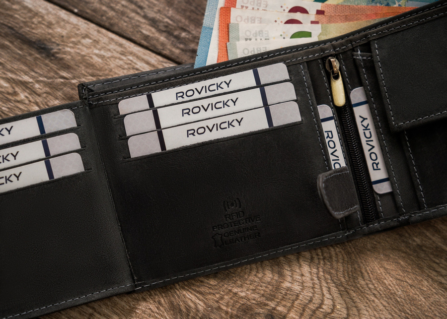 Wyposażony w technologię RFID BLOCKING SYSTEM, która zabezpiecza karty zbliżeniowe, dokumenty biometryczne, legitymacje i karty komunikacji miejskiej przed nieautoryzowanym odczytem danych.