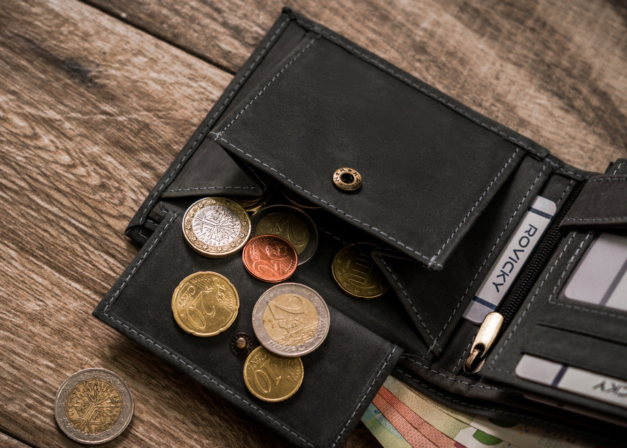 W kieszeniach na banknoty i monety zmieścisz satysfakcjonującą ilość gotówki.