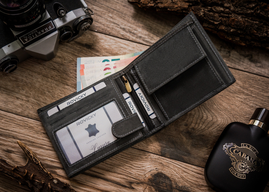 Posiada rozbudowane wnętrze - będzie idealnym wyborem właśnie dla Ciebie, jeżeli na co dzień nosisz dokumenty w dużym formacie jak np. dowód rejestracyjny. Ponadto zmieścisz w nim pokaźne ilości kart oraz gotówki.