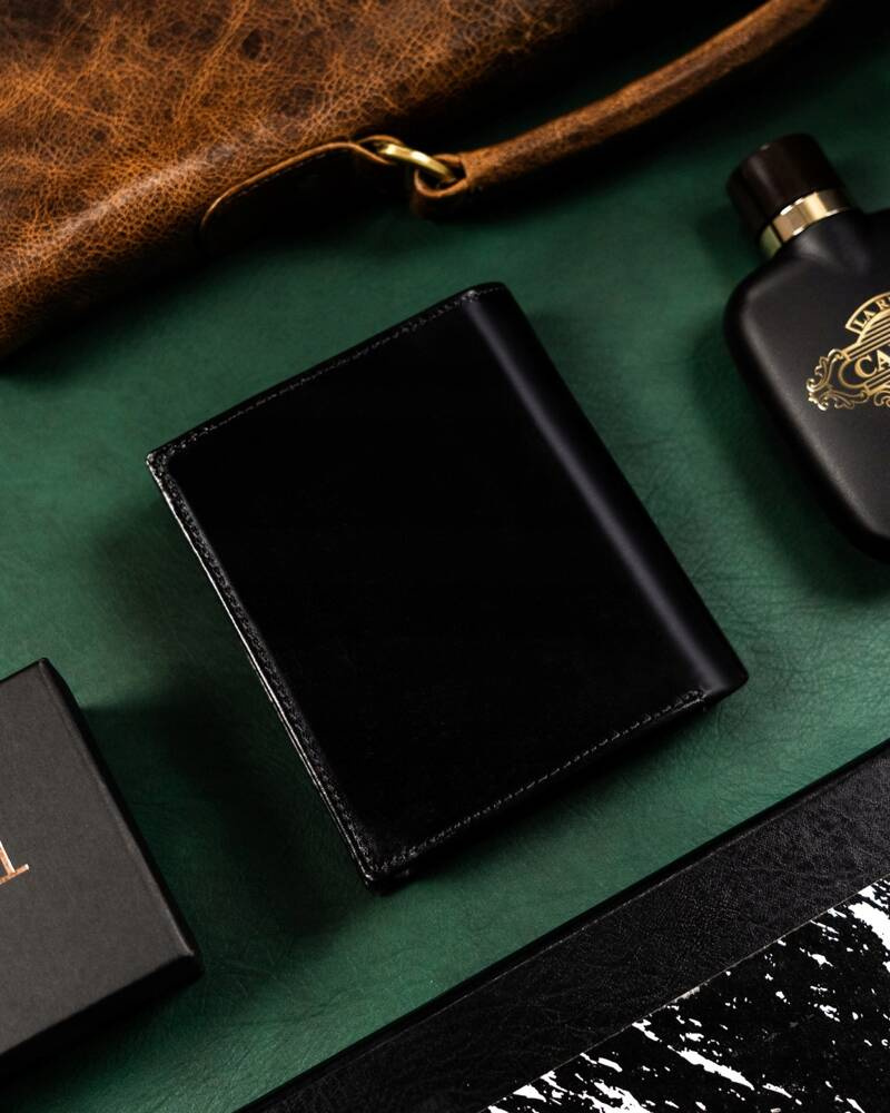 - Jakość i precyzja odszycia | Odszyty z wysokogatunkowej bydlęcej skóry, ale portfel to nie tylko skóra. Wykończony trwałymi materiałami, jak metalowy suwak, zatrzask i logo, odporna na otarcia podszewka czy mocne nici, które zapobiegają pruciu się portfela;