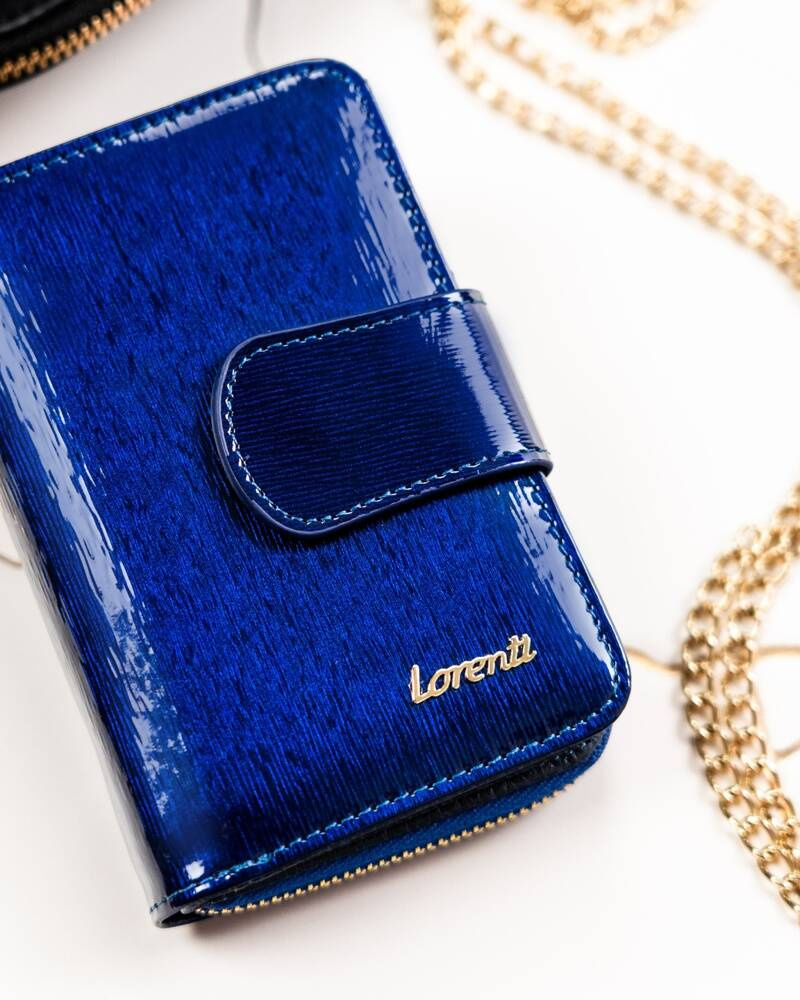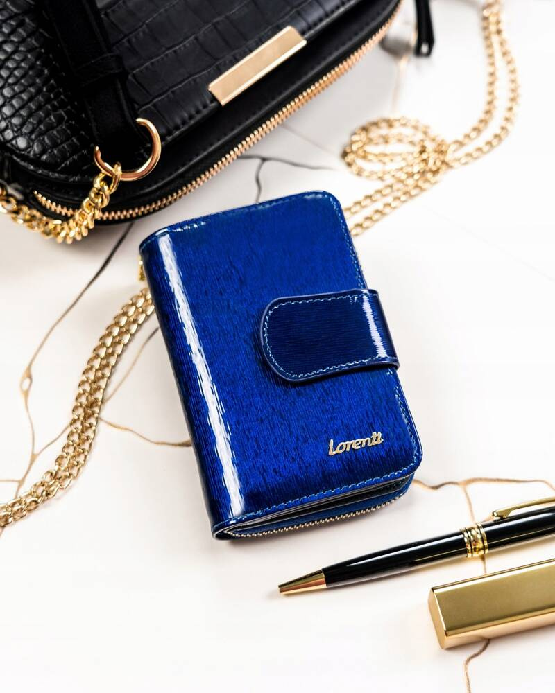 Skórzany portfel damski w orientacji pionowej zamykany na zatrzask — Lorenti