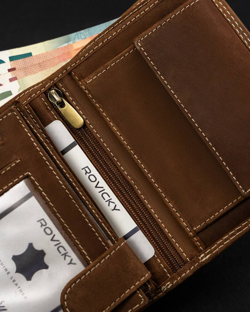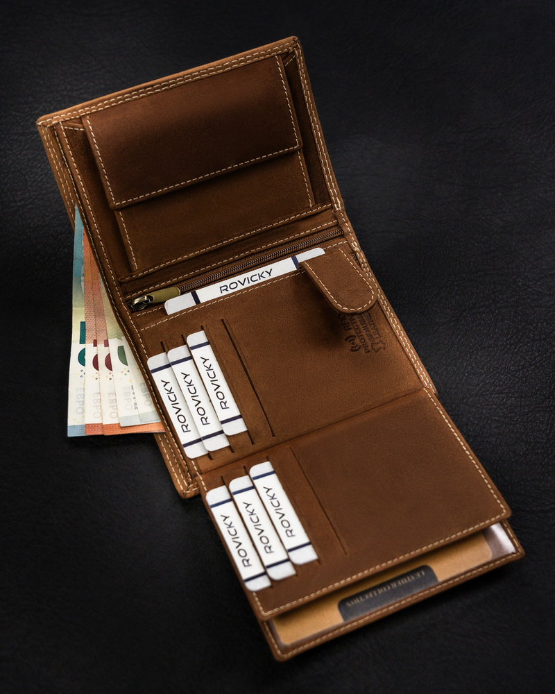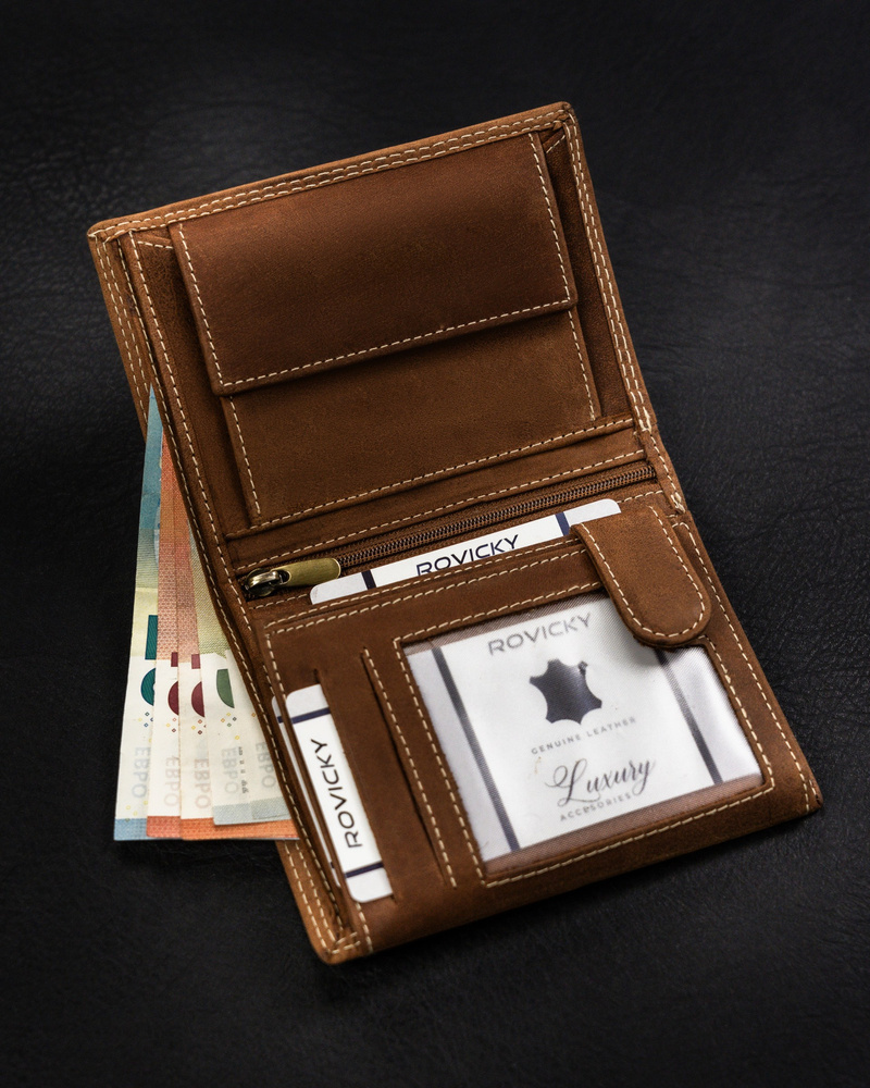 Posiada rozbudowane wnętrze - będzie idealnym wyborem właśniedla Ciebie idealny, jeżeli na co dzień nosisz dokumenty w dużym formacie jak np. dowód rejestracyjny. Ponadto zmieścisz w nim pokaźne ilości kart oraz gotówki.
