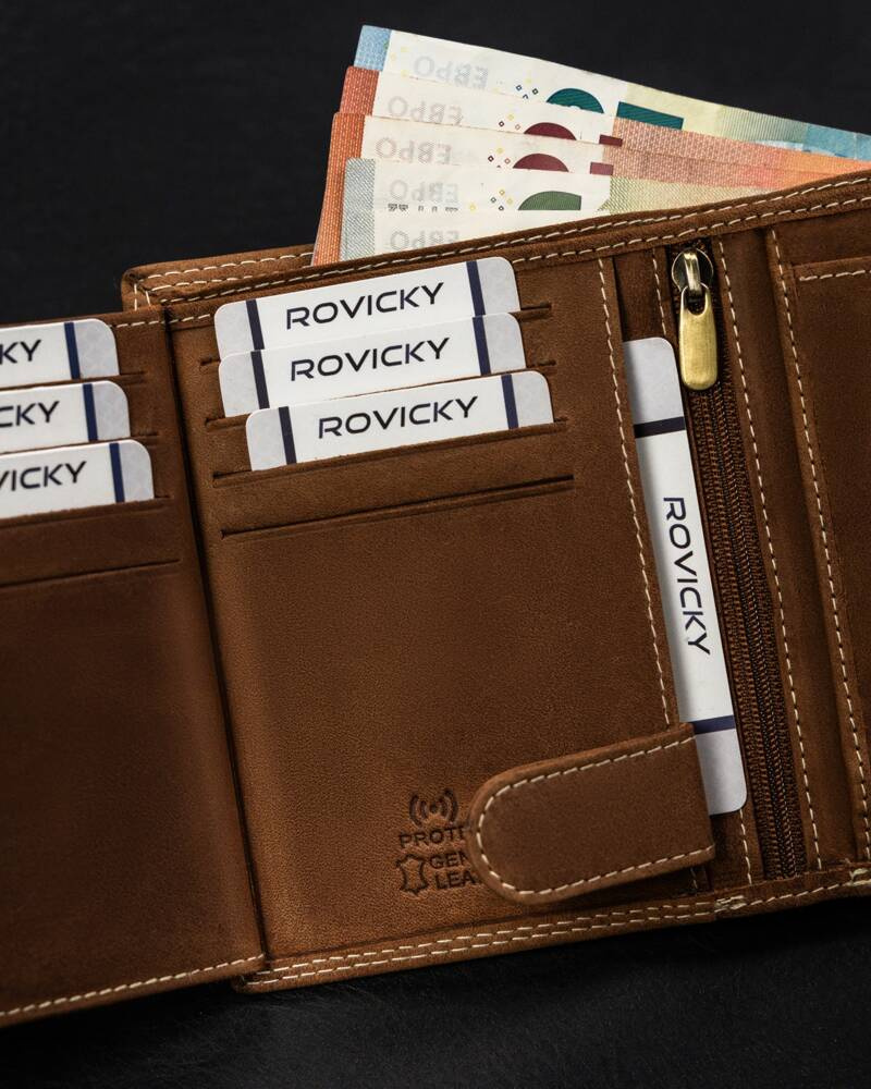Wyposażony w technologię RFID BLOCKING SYSTEM, która zabezpiecza karty zbliżeniowe, dokumenty biometryczne, legitymacje i karty komunikacji miejskiej przed nieautoryzowanym odczytem danych.