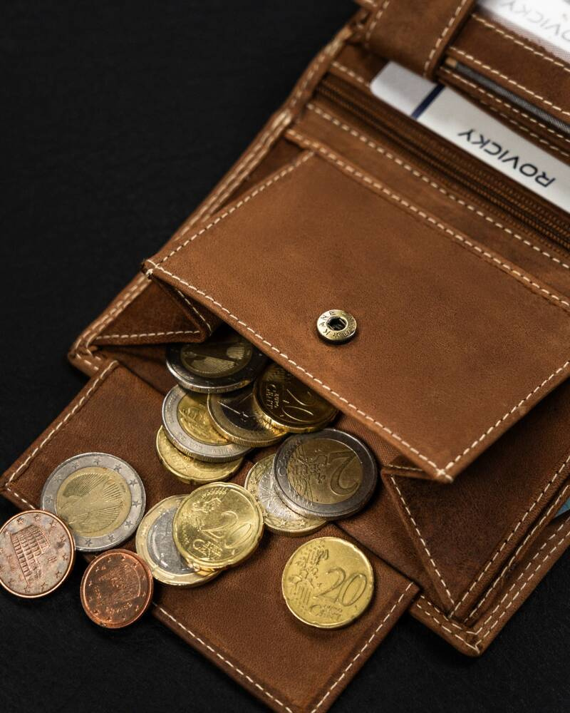W kieszeniach na banknoty i monety zmieścisz satysfakcjonującą ilość gotówki.