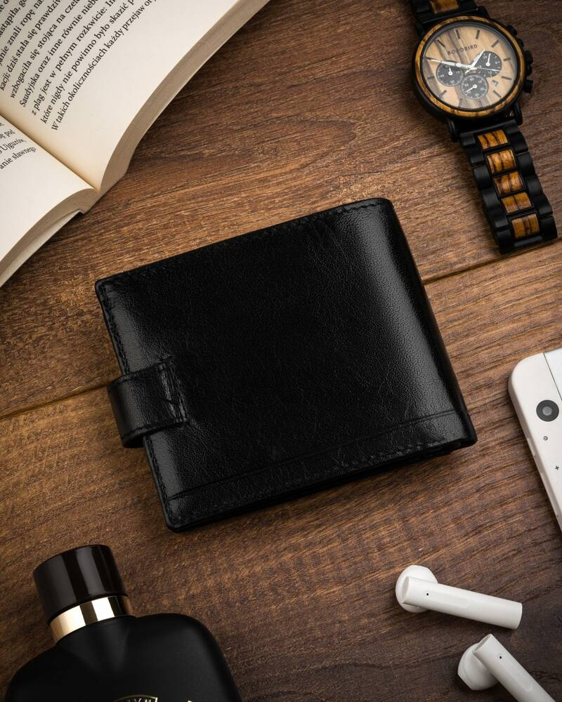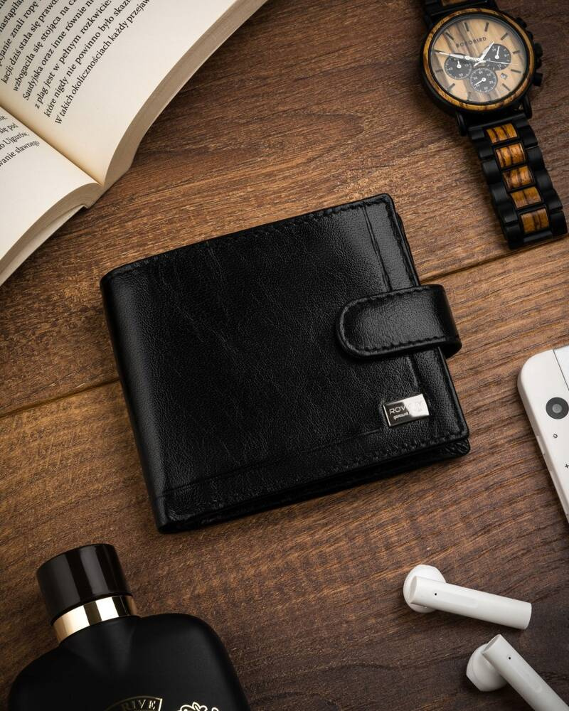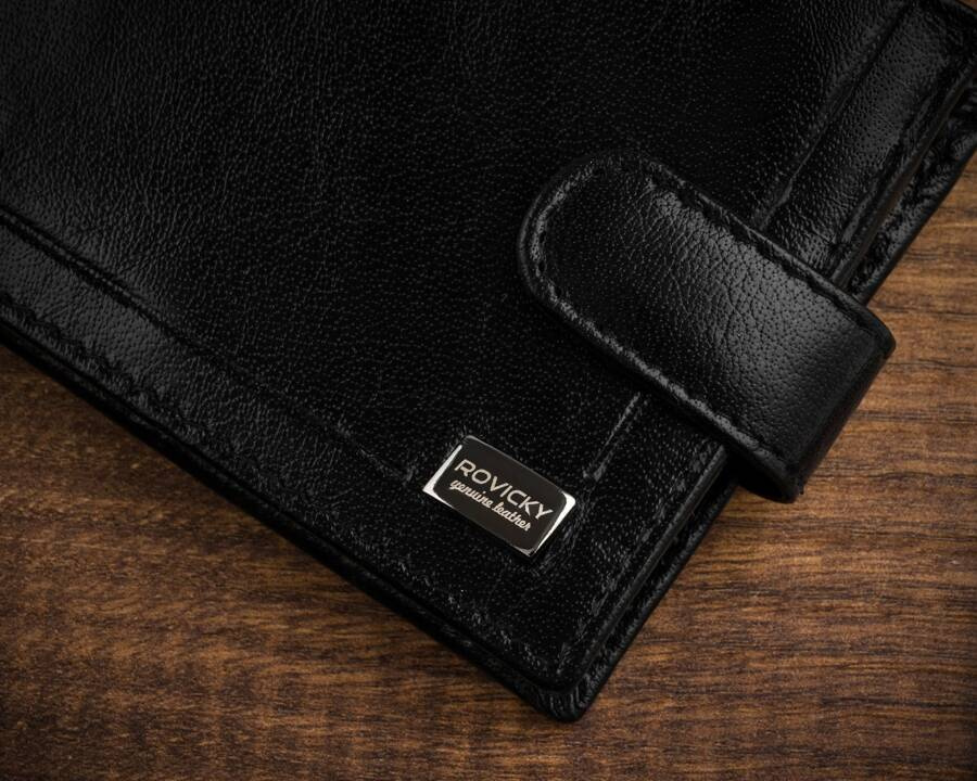 Klasyczy, skórzany portfel męski na zatrzask - Rovicky