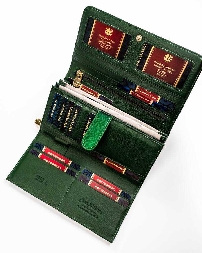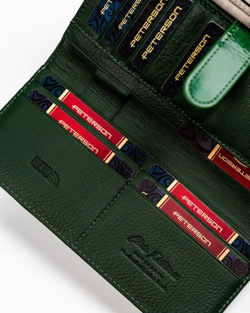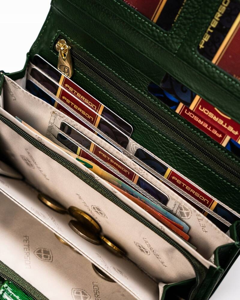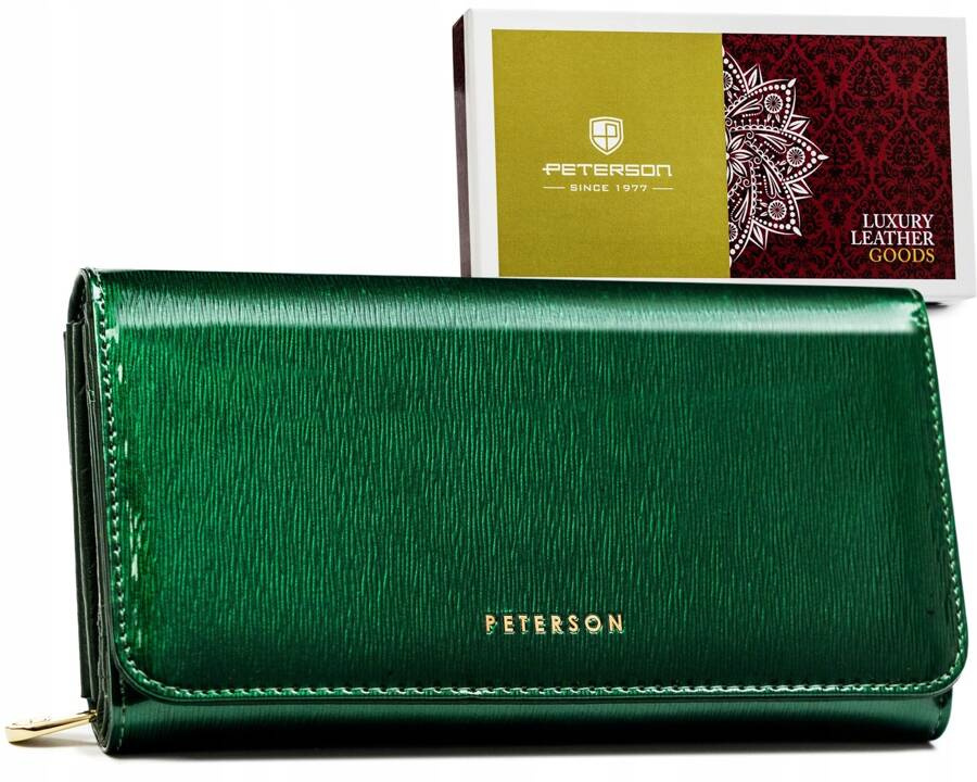 Skórzany, lakierowany portfel damski z miejscem na długopis — Peterson