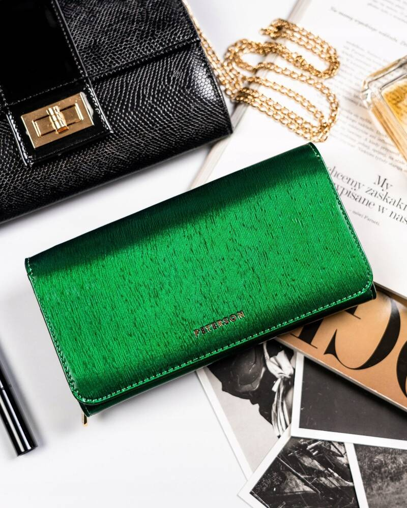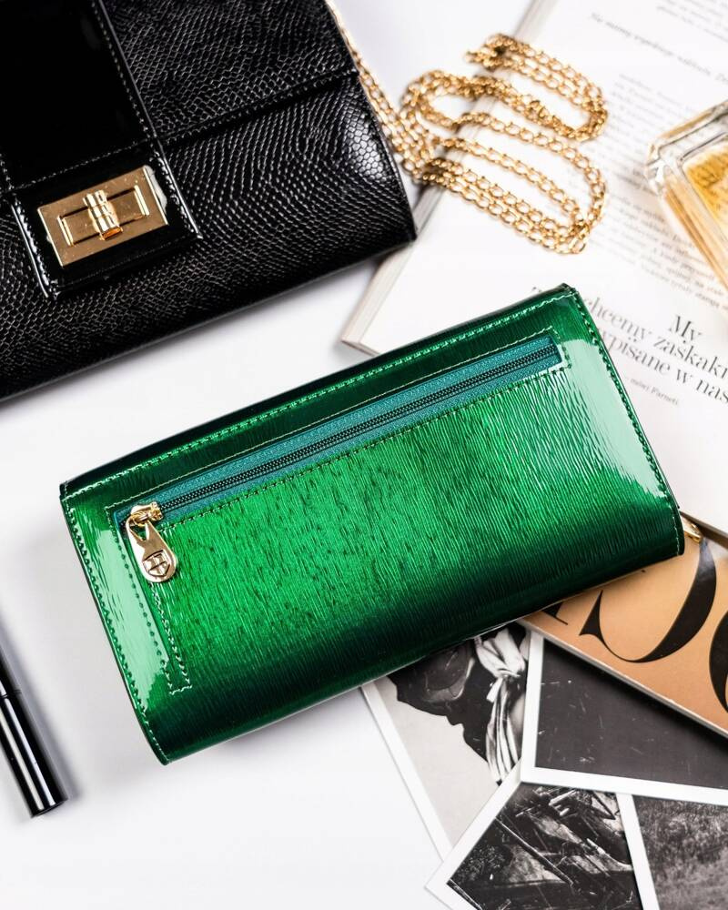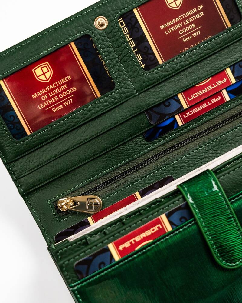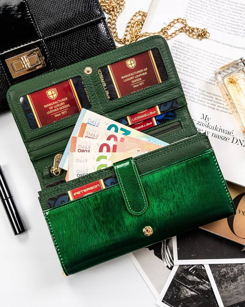 Skórzany, lakierowany portfel damski z miejscem na długopis - Peterson