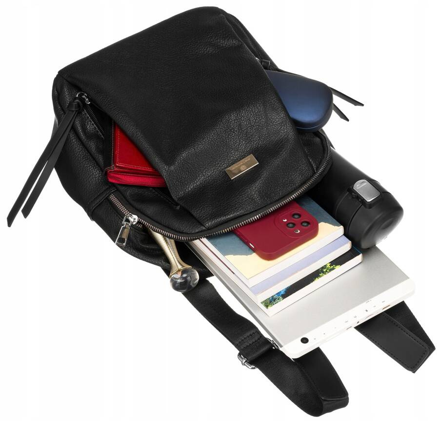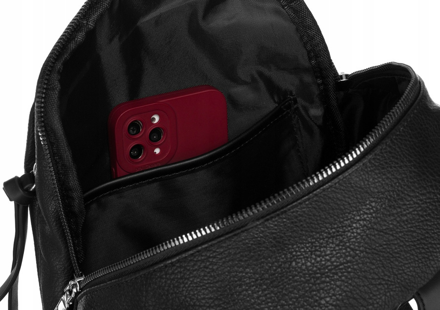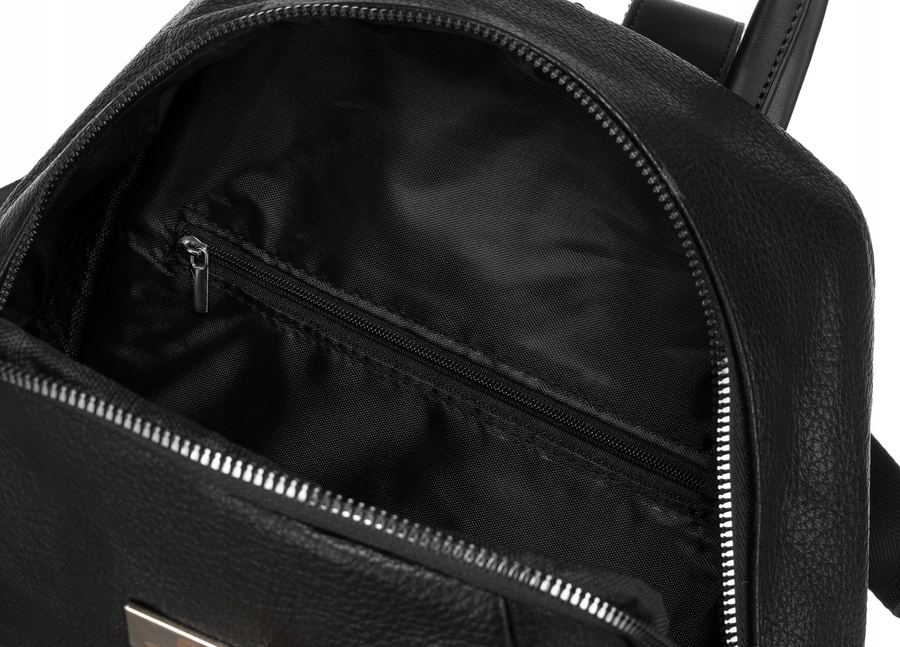 • Pojemny i funkcjonalny model | Plecaczek ma komorę zamykaną zamkiem błyskawicznym, środek obszyto materiałową podszewką w niebrudzącym, czarnym kolorze. Model nie mieści formatu A4;
