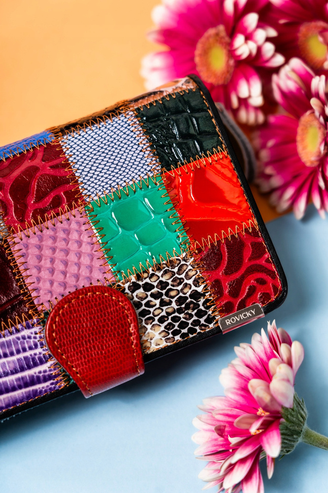 - Wyróżnij się! | Zewnętrzną część portfela zdobi śliczny kolorowy patchworkowy wzór;