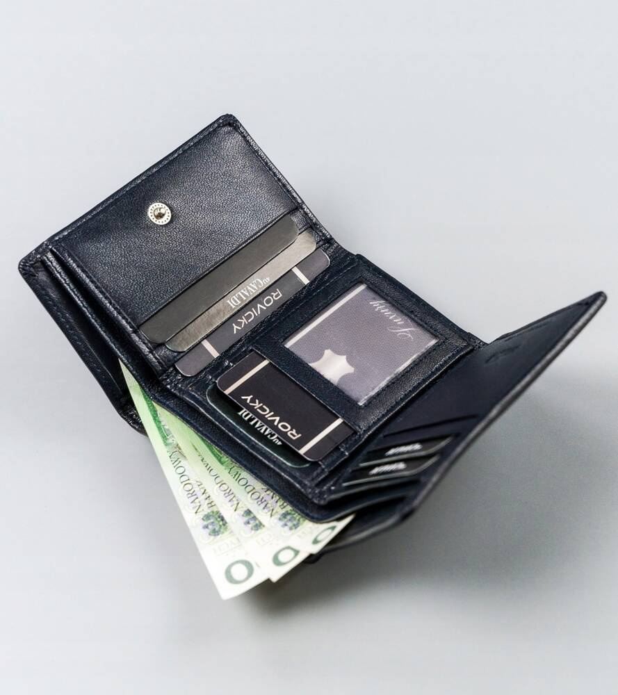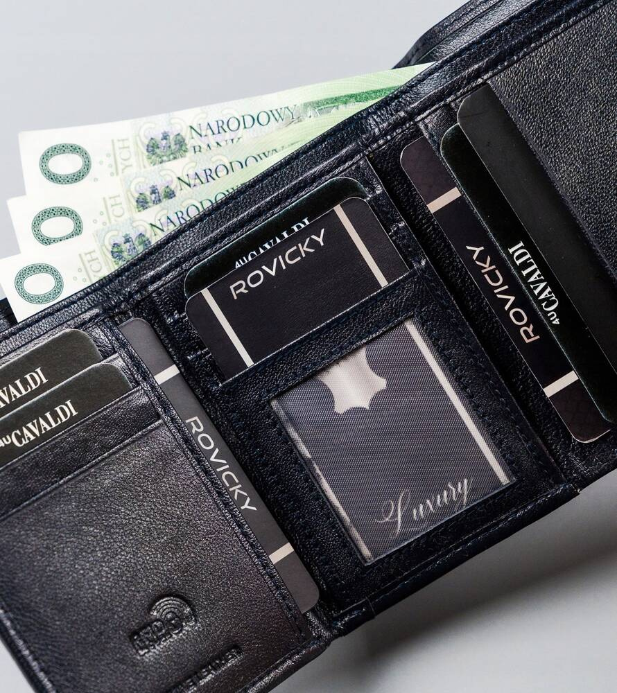 Przegródki na karty i dokumenty zabezpieczono podszewką. Pozwala to uniknąć otarć na skórze, podczas wkładania i wyjmowania kart.