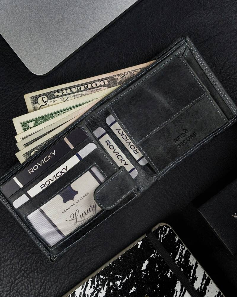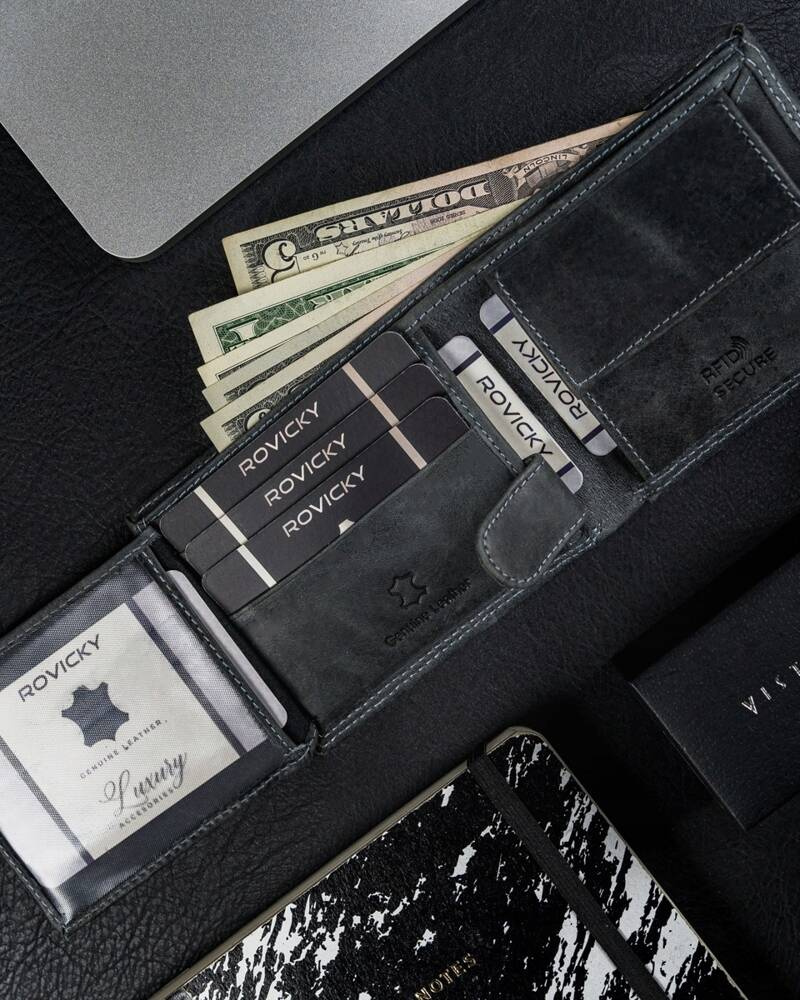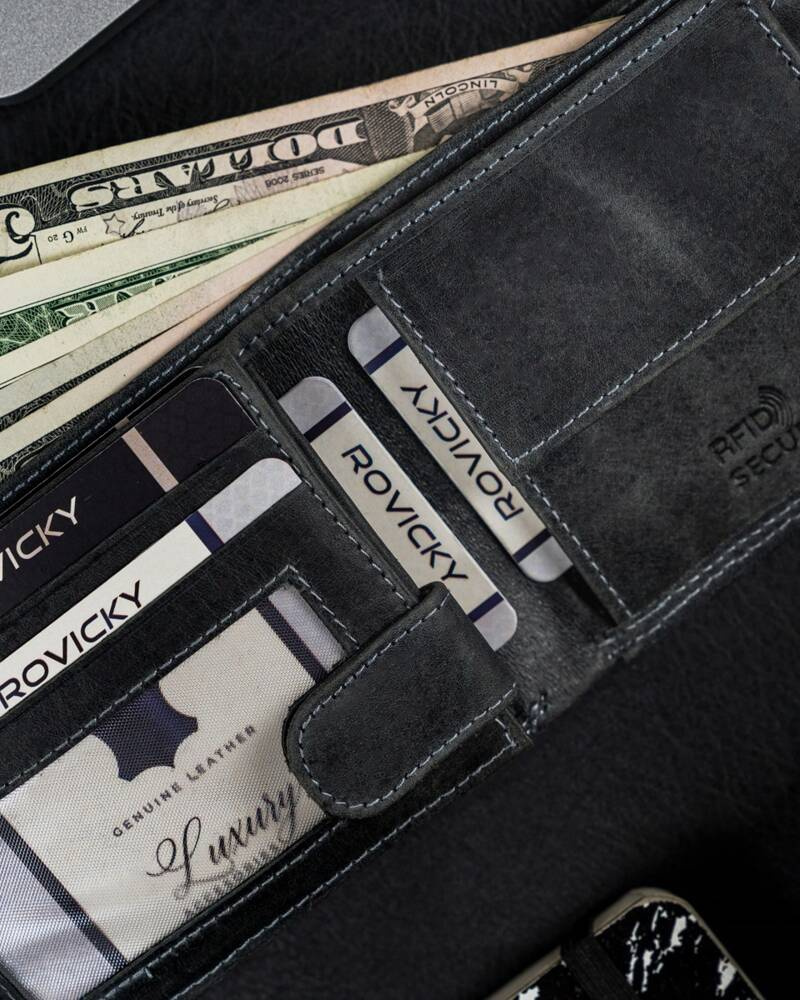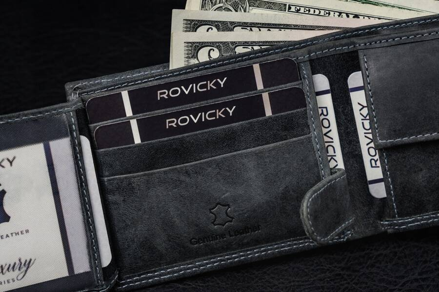 • Bezpieczny - wyposażony w technologie RFID, która chroni portfel przed złodziejami używającymi czytniku do kart;