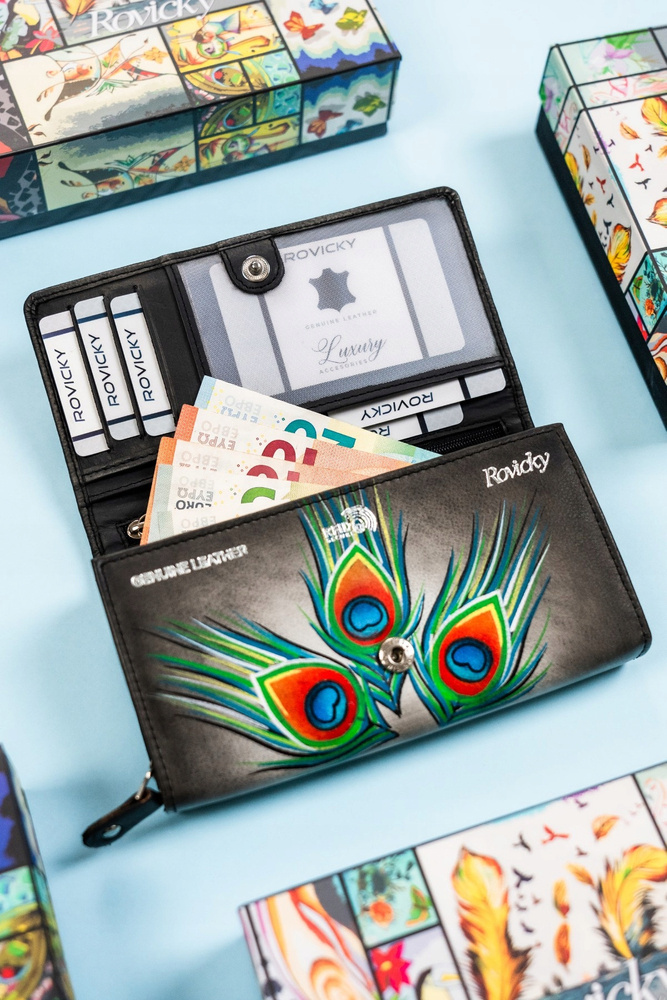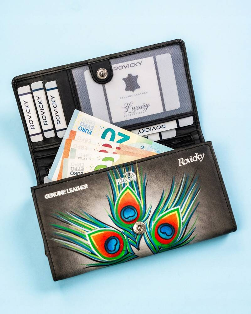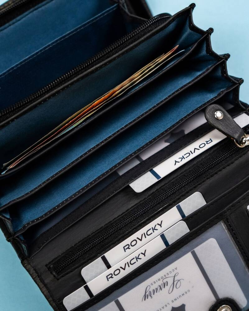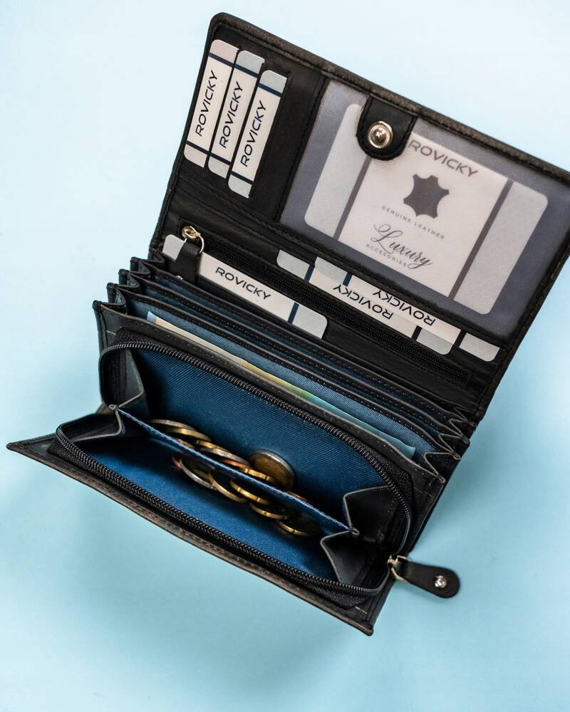 Duży, skórzany portfel damski na zatrzask - Rovicky