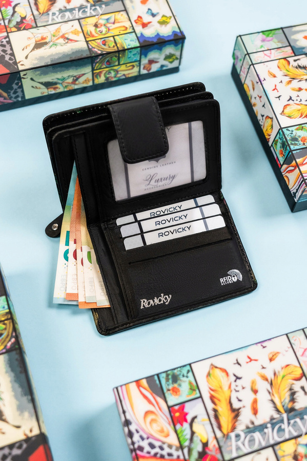 - 2 obszerne przegródki na banknoty, które pomieszczą znaczną ilość gotówki.