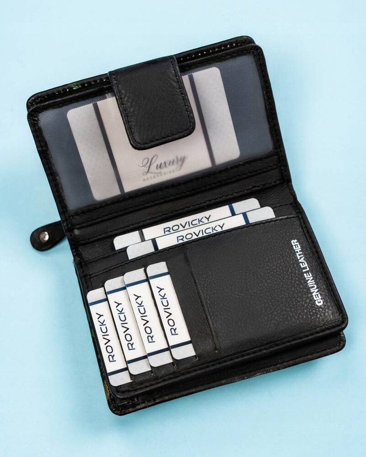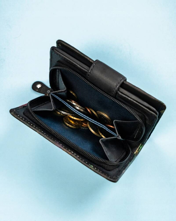 Odpowiedni podział schowków idealnie sprawdzi się jeśli potrzebujesz przechowywać kilka walut. Dzięki podwójnym kieszonkom możesz je komfortowo rozdzielić.