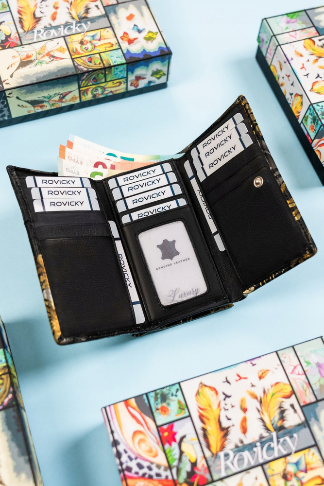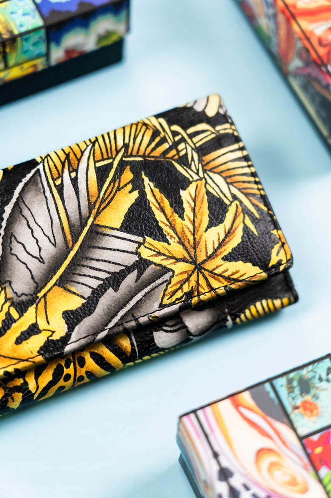 - Artystyczny design | Nowoczesny design połączony z klasycznym kształtem. Dzięki zastosowaniu artystycznych wzorów imitujących ręczne malowidła portfel prezentuje się wyjątkowo;