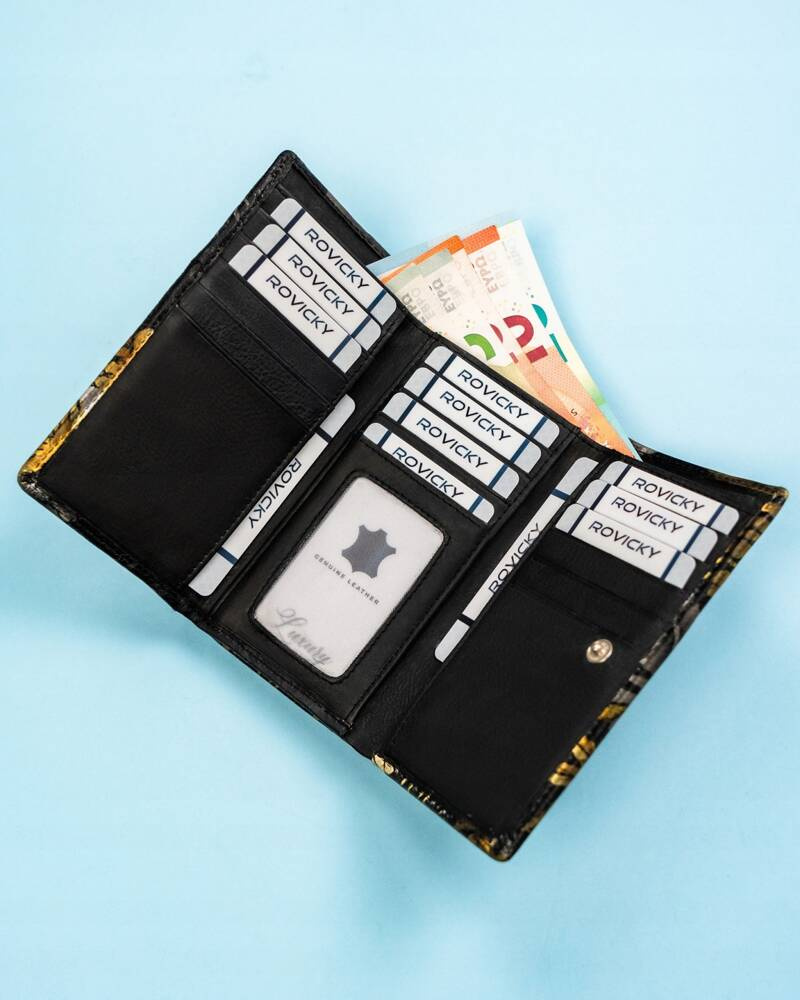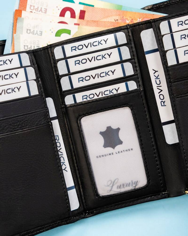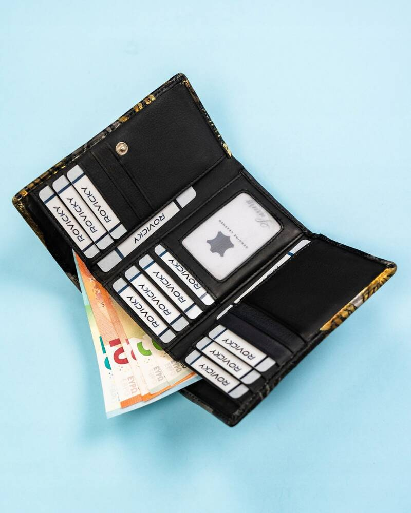 Duży portfel damski na zatrzask wykonany ze skóry naturalnej - Rovicky
