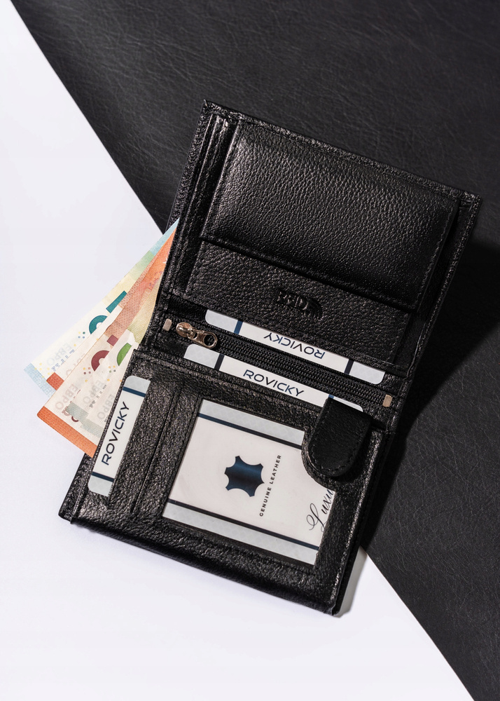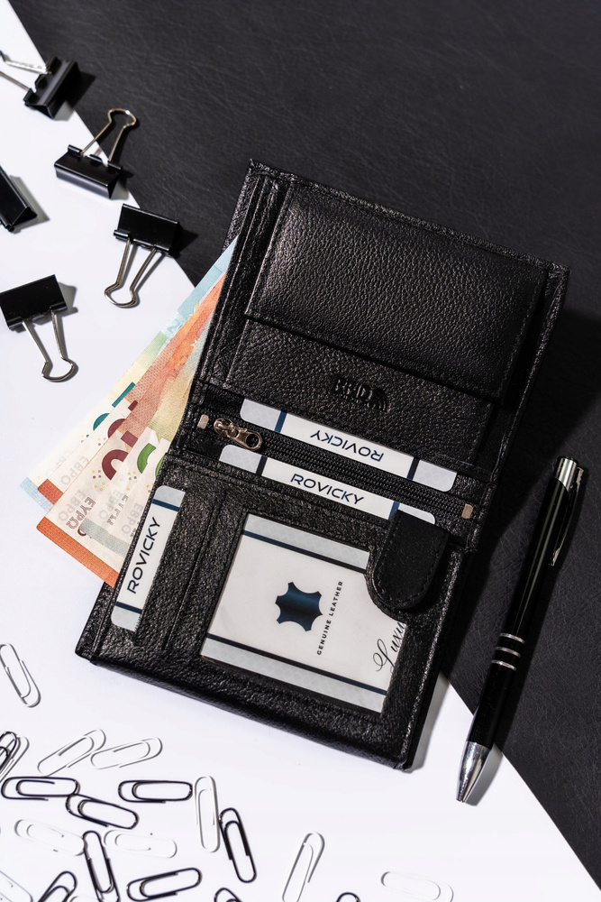 Elegancki, duży portfel męski ze skóry naturalnej - Rovicky