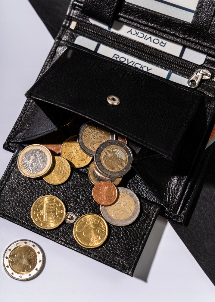 • Zawiera pojemną kieszeń na bilon zamykaną na zatrzask, w której zmieścisz znaczną ilość gotówki. Odpowiednia budowa schowka zapewnia bezpieczeństwo oraz komfort wyciągania z niej pieniędzy.
